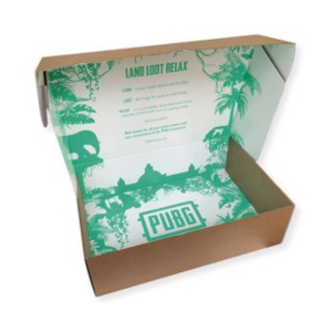 Klepdoos van golfkarton met bedrukte binnenzijde